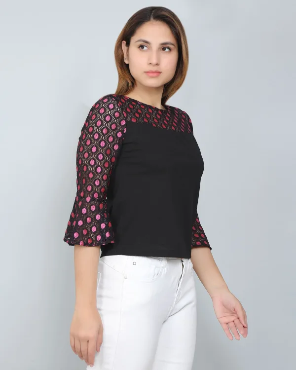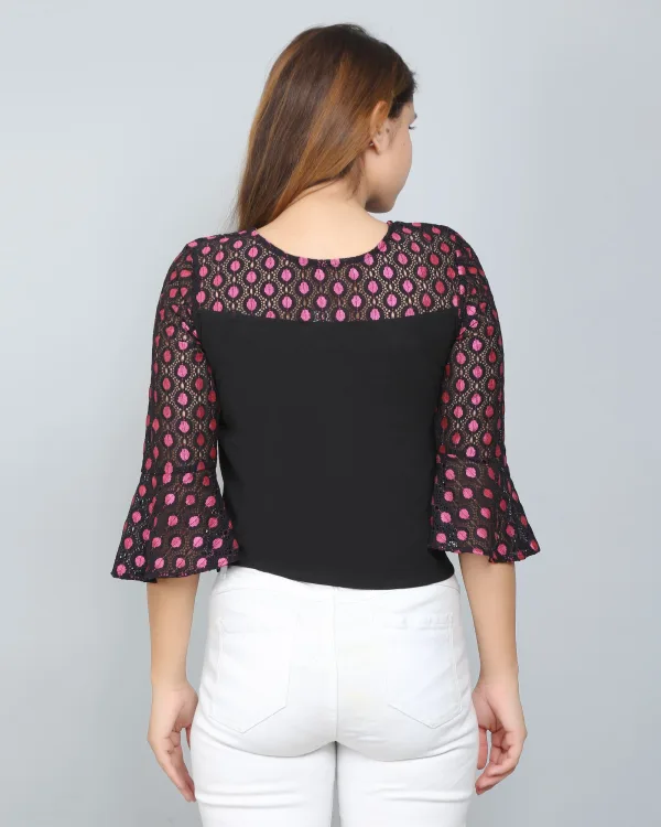 Elevate your style game with the Black & Pink Colorblocked Lace Top, a perfect blend of modern aesthetics and classic charm. Embrace your unique fashion sense and let this top be the centerpiece of your wardrobe, celebrating your individuality with every wear. Discover the perfect balance of style and comfort today!