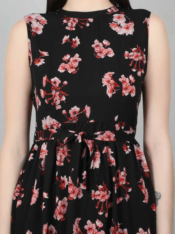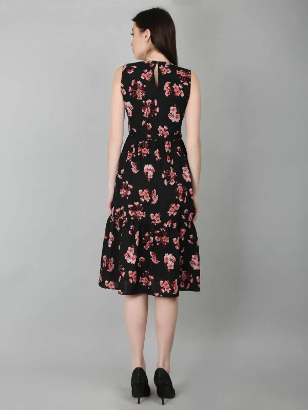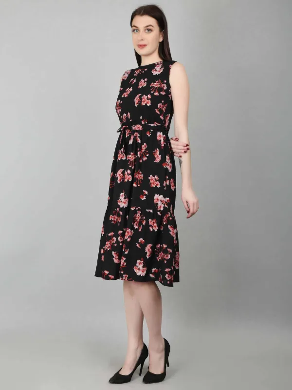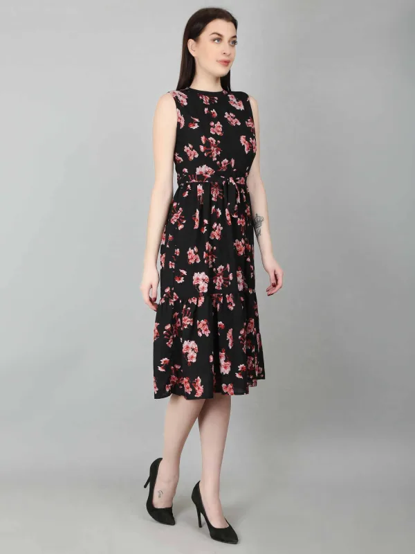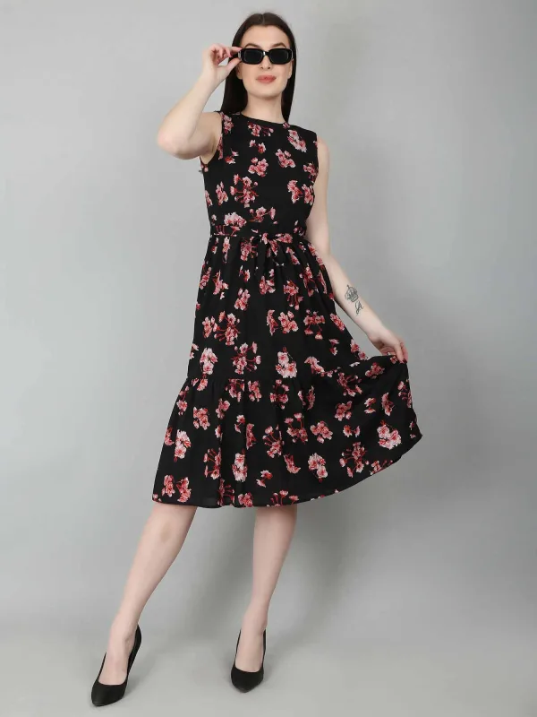 The Black Floral Tiered Belted Dress is a versatile and stylish option for women, offering both elegance and playfulness. This black floral dress for women features flowing tiers that create a flattering silhouette, while the belt cinches the waist, adding a defined shape. The classic black color provides sophistication, while the floral pattern adds a feminine touch. This black dress is perfect for various occasions, whether you want to dress it up for formal events like weddings or cocktail parties with heels and statement jewelry, or dress it down for casual outings with sandals and a denim jacket. Its ability to transition effortlessly between different looks makes it a must-have for any wardrobe. With endless styling options, this black floral dress for women is the ideal choice for those seeking a stylish, feminine piece that can be worn for both day and evening events.