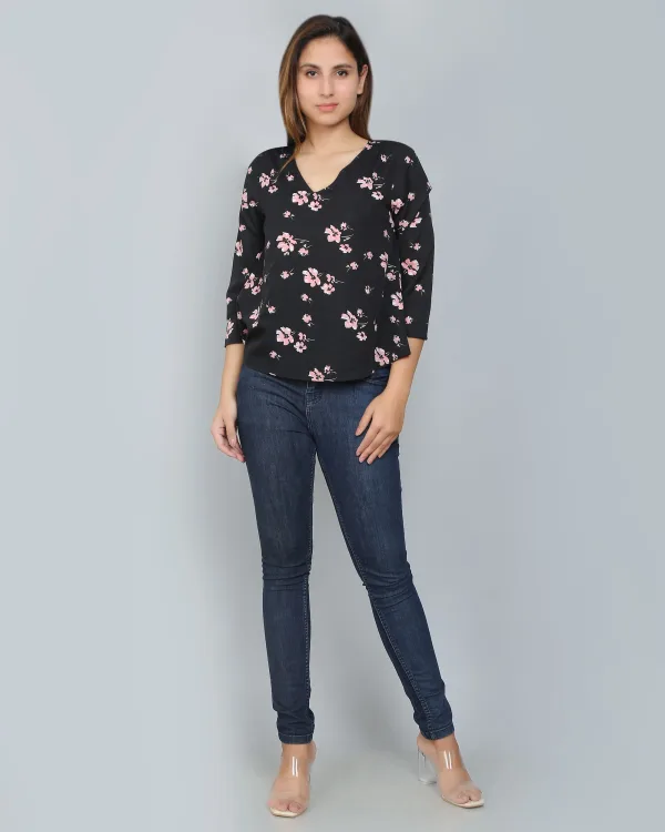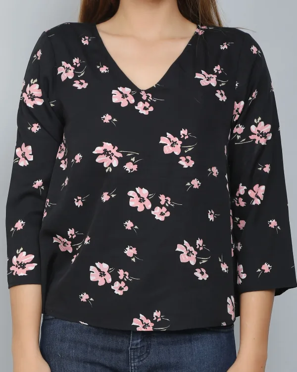 Im really impressed with this Black Floral V-Neck Top. The floral pattern is beautiful and the V-neckline is just the right amount of stylish. The fabric is soft and comfortable, making it great for everyday wear.