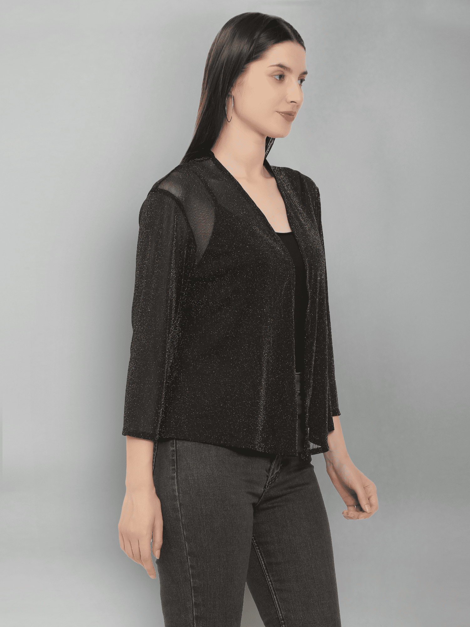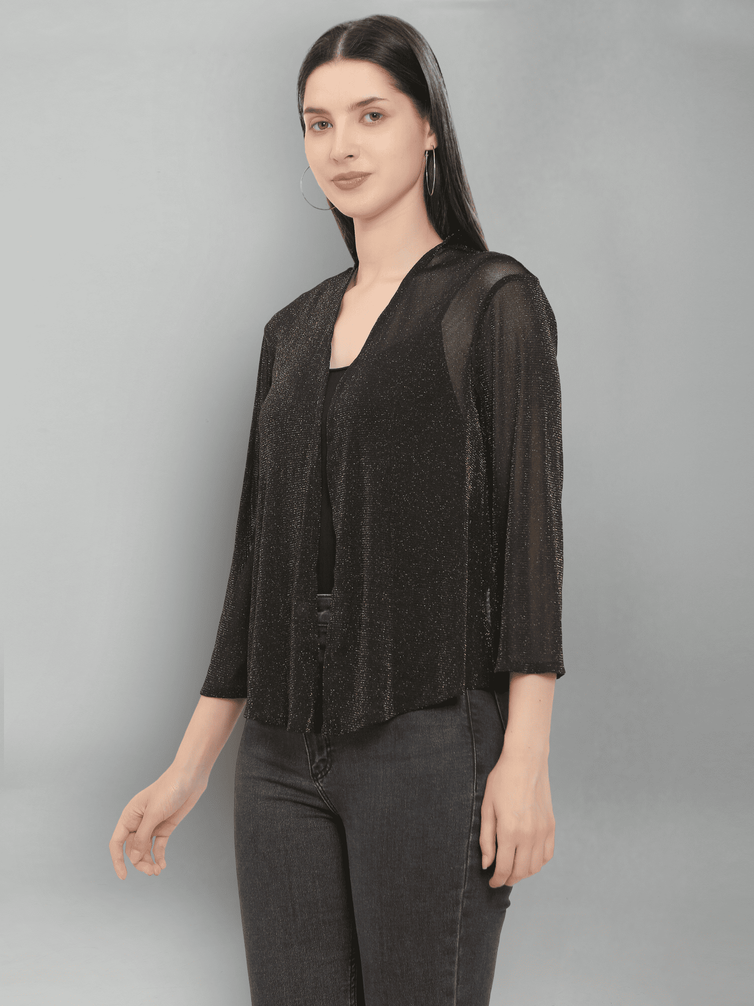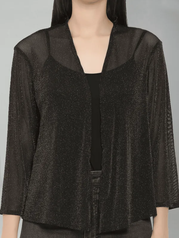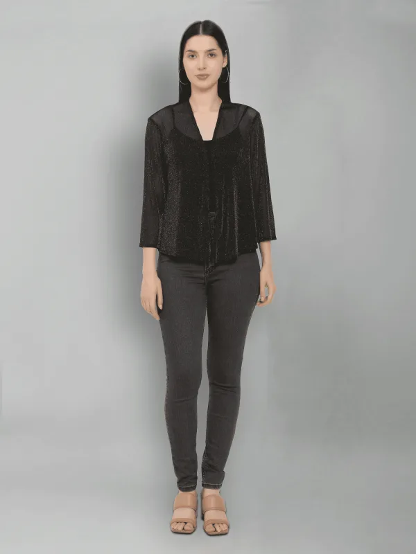 With its easy-to-wear design and sophisticated look, the Black Shimmer Mesh Party Shrug is an essential addition to your wardrobe. Elevate your outfit and embrace the allure of shimmering details—perfect for making a statement at your next event!