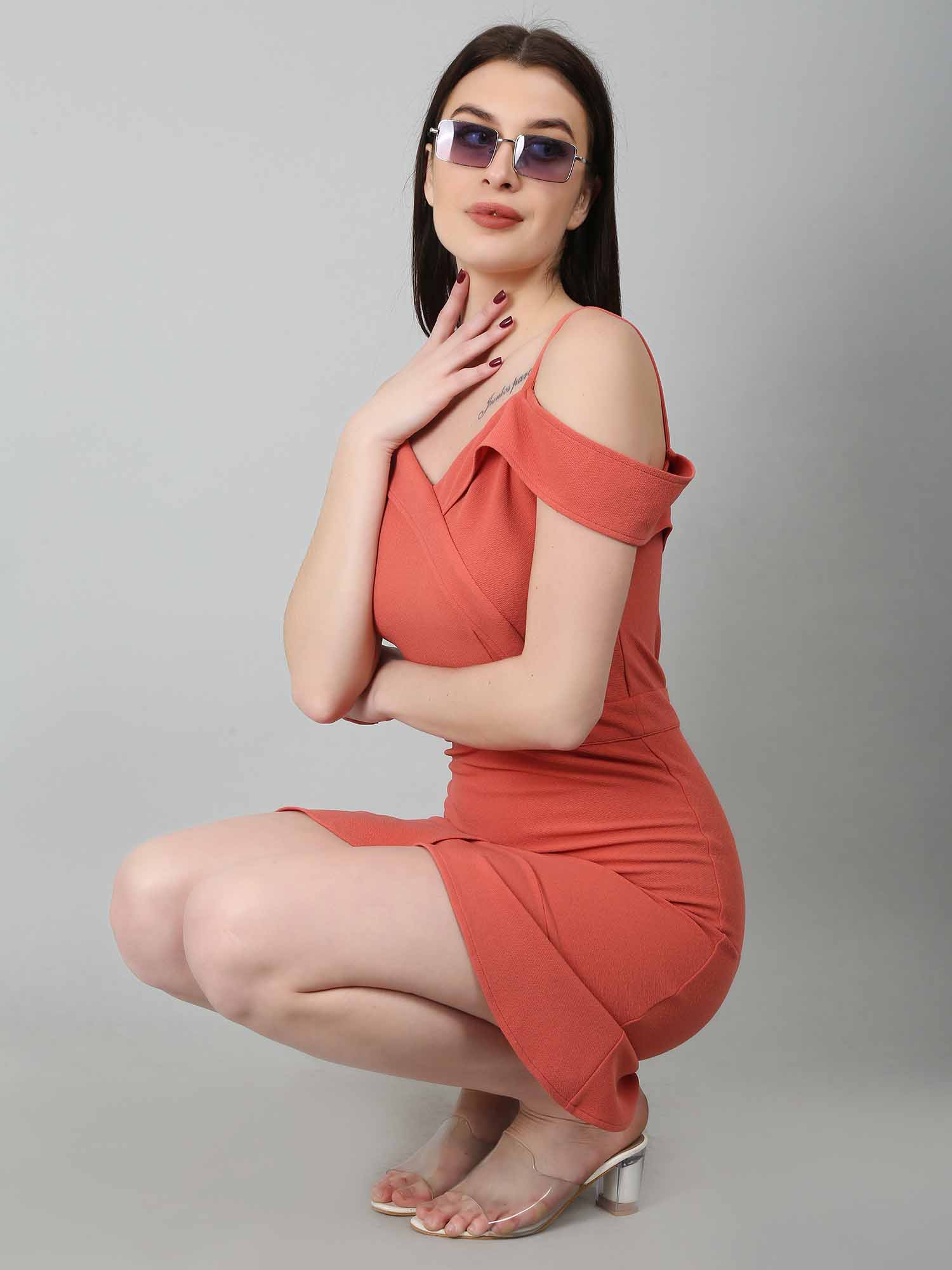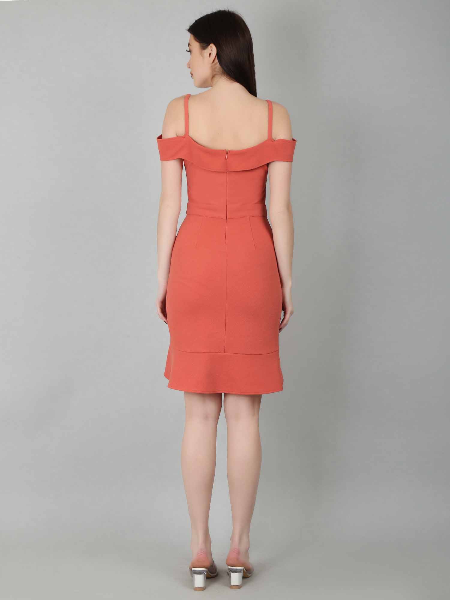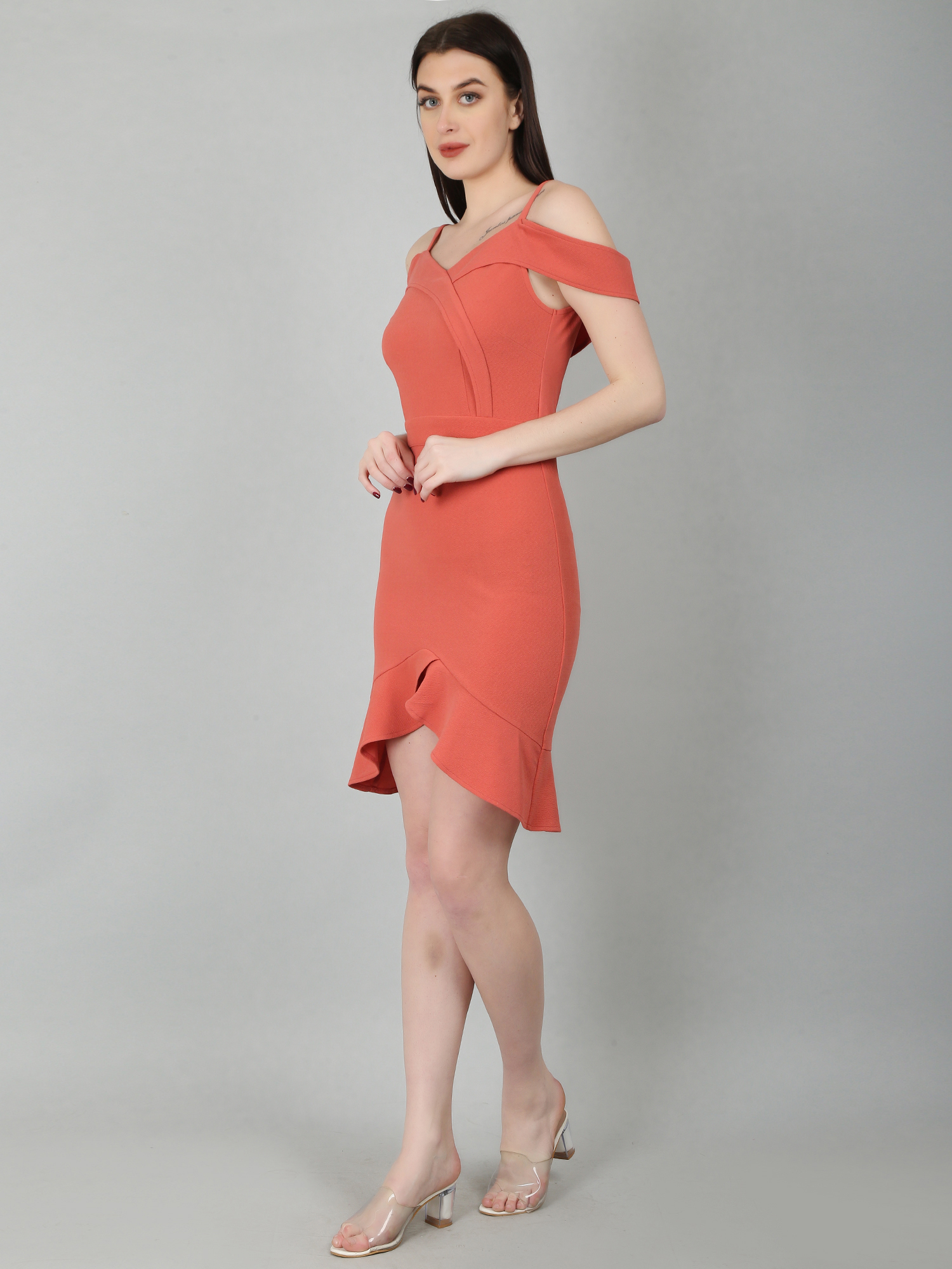 A coral ruffle bodycon dress is a vibrant and feminine piece, perfect for warm weather or tropical getaways. The coral dress features playful ruffle details that add a fun touch, enhancing curves and drawing attention to the shoulders and neckline. This ruffle dress is ideal for those looking to highlight these areas. Made from stretchy fabric, the bodycon dress ensures a smooth, flattering silhouette, but it's important to choose a well-fitting size for comfort. With its high-low hem, sweetheart neckline, frilled sleeves, and concealed back zipper, this coral bodycon dress is a standout option for summer weddings or nights out, offering both style and confidence.