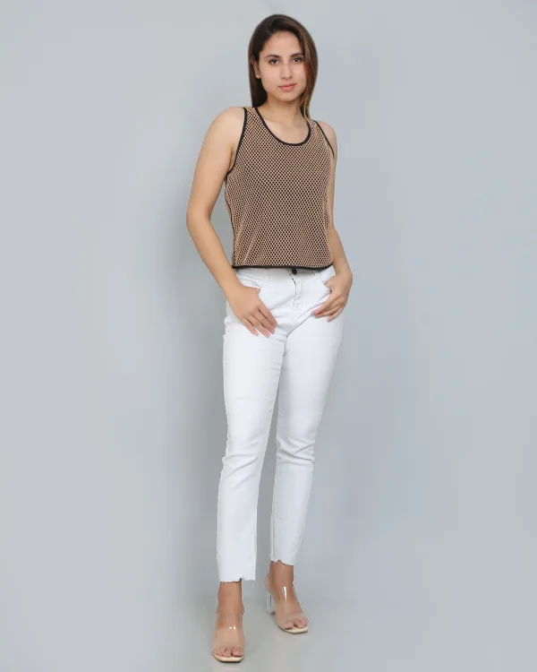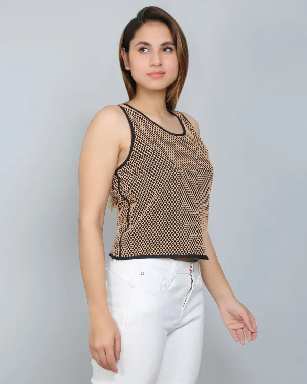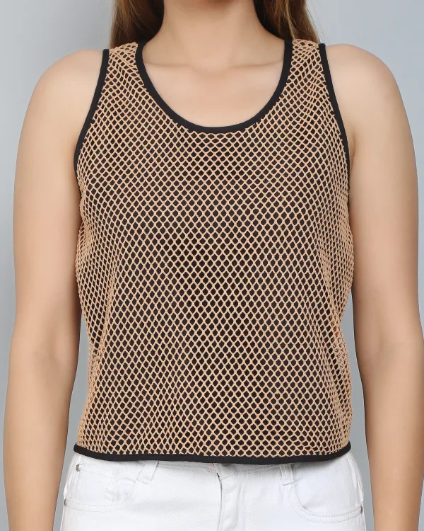 Embrace effortless style with the Dark Beige Net Sleeveless Top, a timeless piece that combines comfort and elegance. Perfect for layering or wearing on its own, this top is a must-have for any fashion-forward wardrobe!
