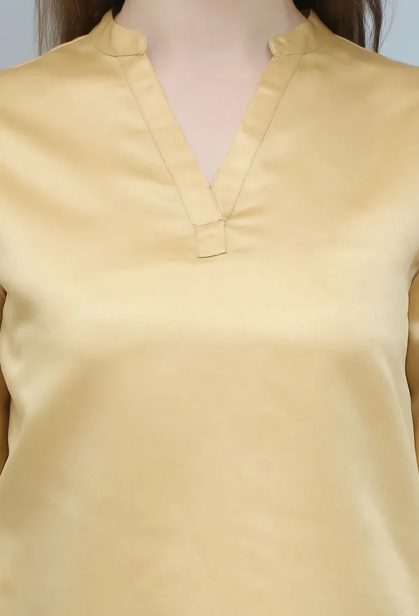 "Stunning shirt! The golden satin fabric is luxurious and feels incredibly comfortable.""Stunning shirt! The golden satin fabric is luxurious and feels incredibly comfortable."