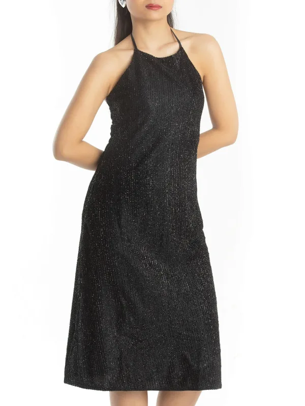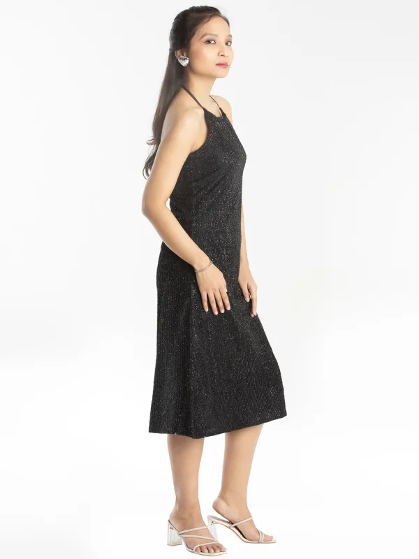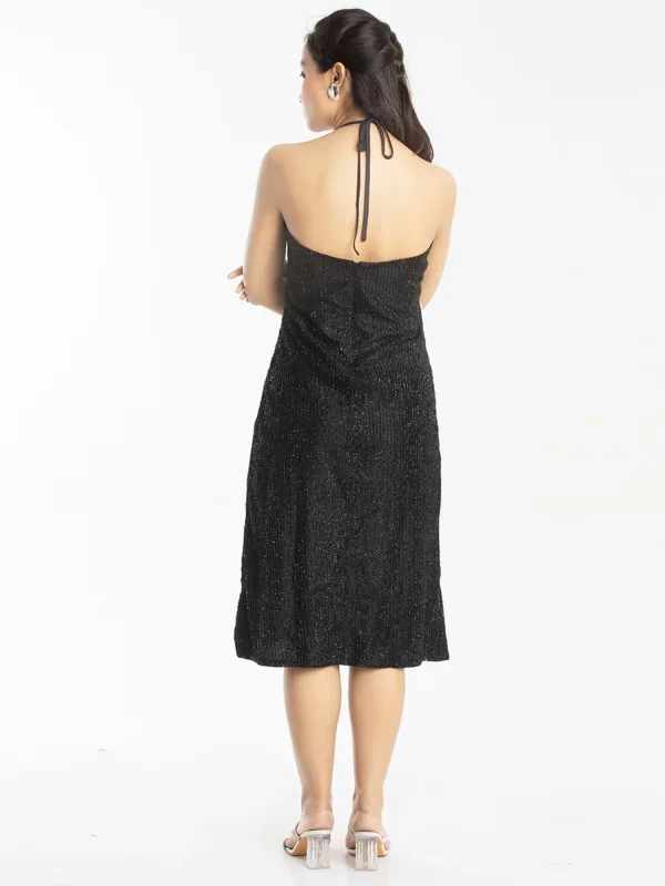 Versatility is key, and this Black Self Design Halterneck Dress seamlessly transitions from day to night. Layer it with a stylish blazer for a sophisticated office look, or add a bold clutch for a night out with friends.