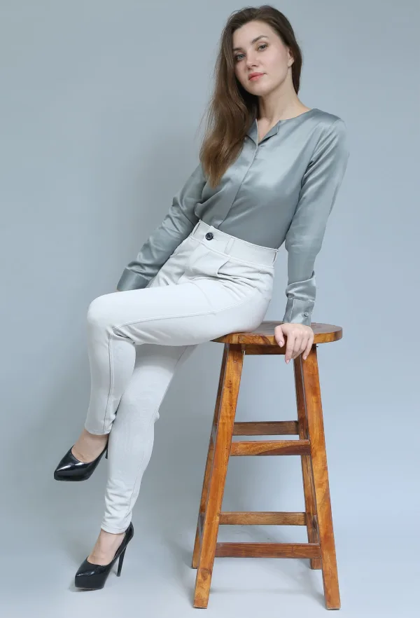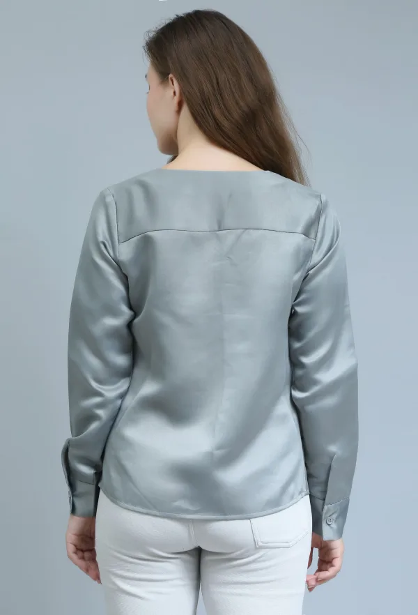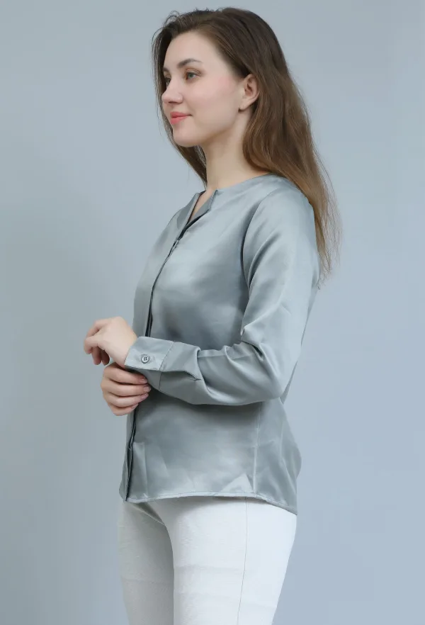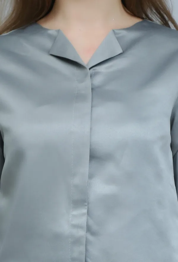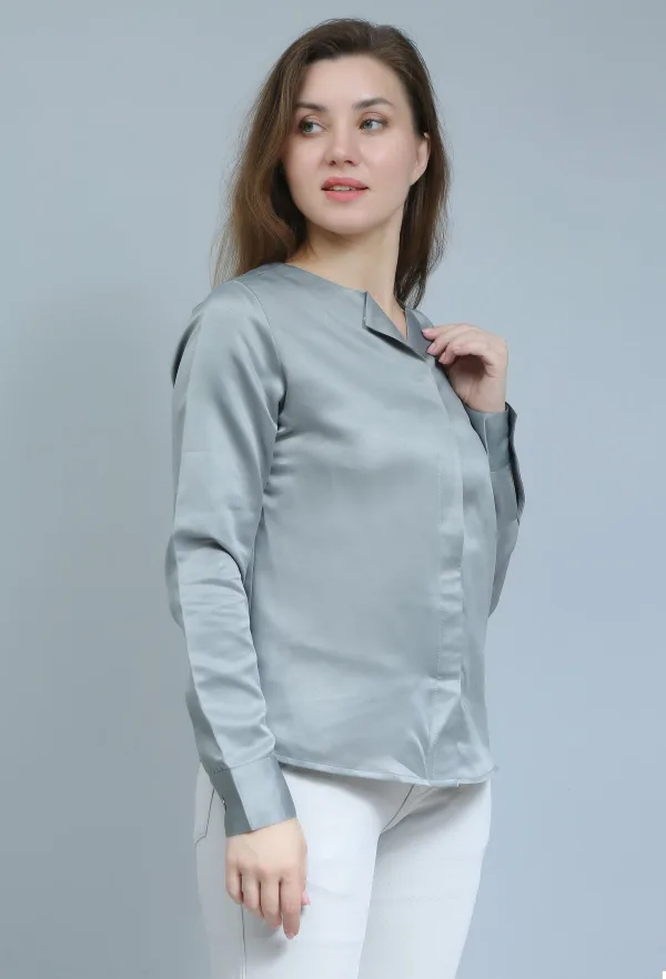 This Grey Satin Formal Shirt offers a sleek, polished look perfect for business or formal occasions. Made from high-quality satin, it provides a smooth, luxurious feel with a subtle sheen that adds sophistication to any outfit. The shirt's tailored fit enhances your silhouette, while the spread collar and buttoned cuffs give it a classic, timeless appeal. Its neutral grey color makes it versatile and easy to pair with various trousers or suits. Designed for comfort and style, this shirt is ideal for those seeking a refined yet modern addition to their wardrobe.