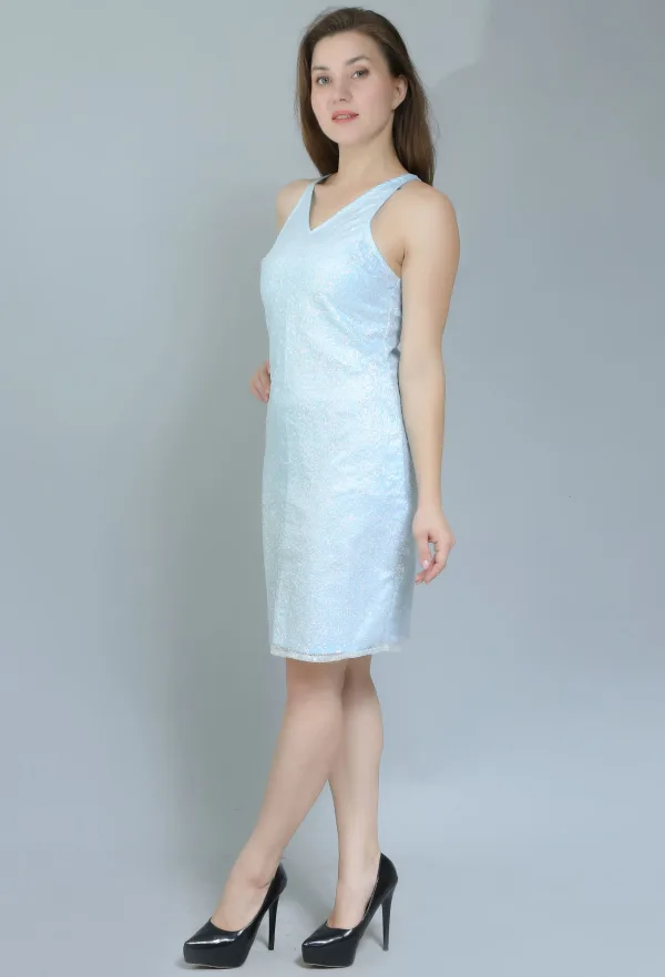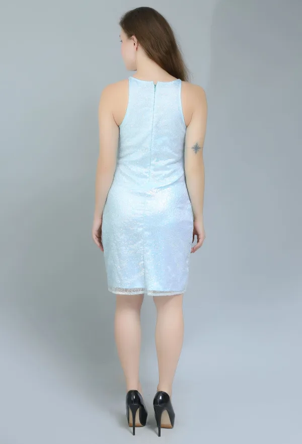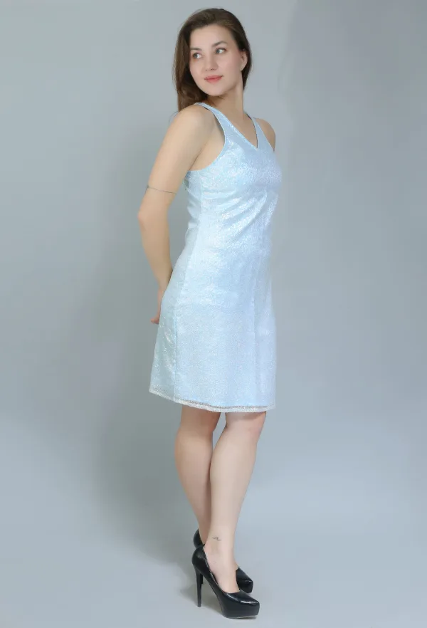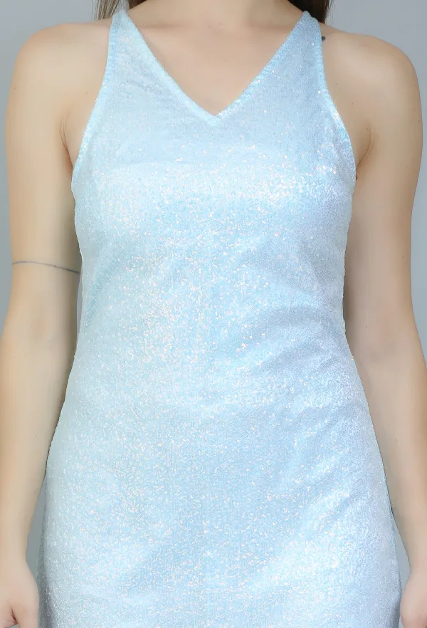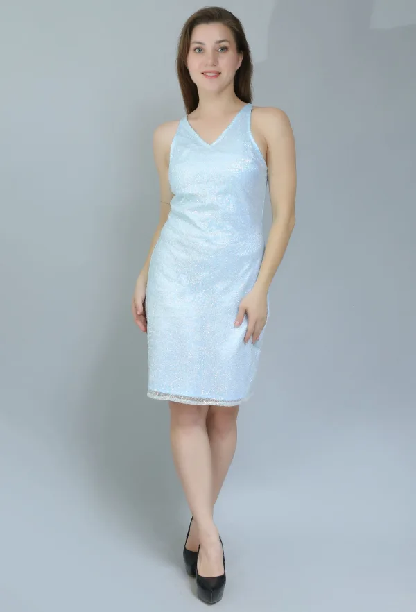 Available in a range of sizes, this dress is designed to celebrate all body types, ensuring that everyone can embrace their inner sparkle. With its timeless design and versatile style, the Light Blue Sequinned Sleeveless Dress is a must-have addition to your collection.
