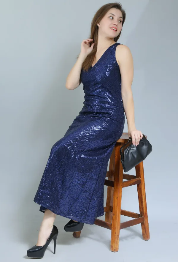 Don’t miss your chance to dazzle in our Navy Sequinned Partywear Gown. Step into elegance and make unforgettable memories in this captivating piece that promises to turn heads and leave a lasting impression. Shop now and embrace your inner glamour!