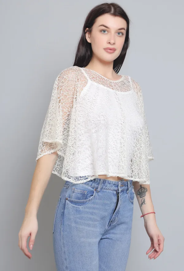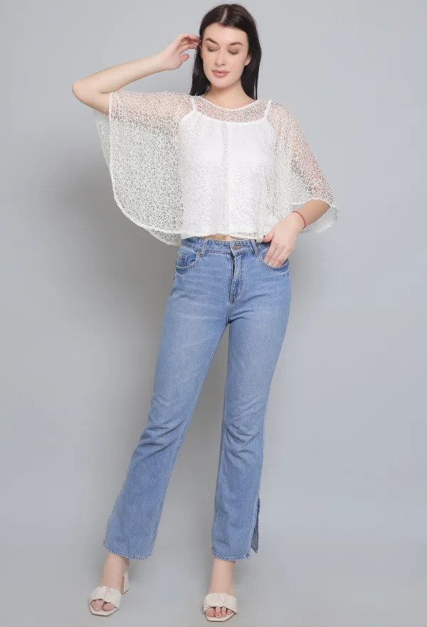 For the price, this Off White Self Design Lace Poncho is a fantastic deal. It looks so good and feels much more expensive than it is.