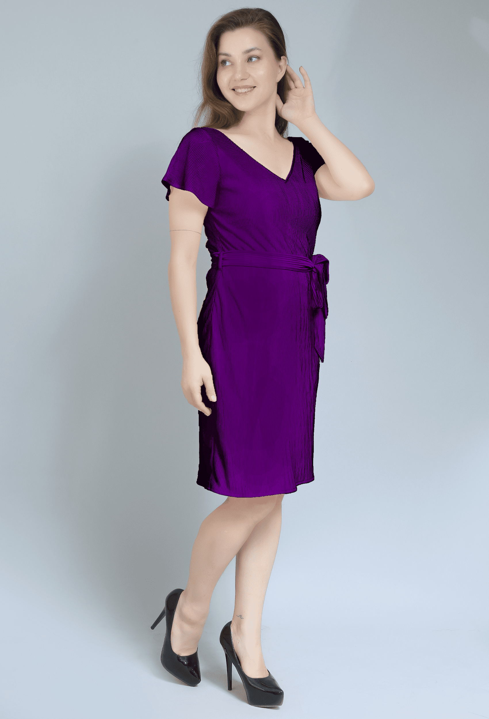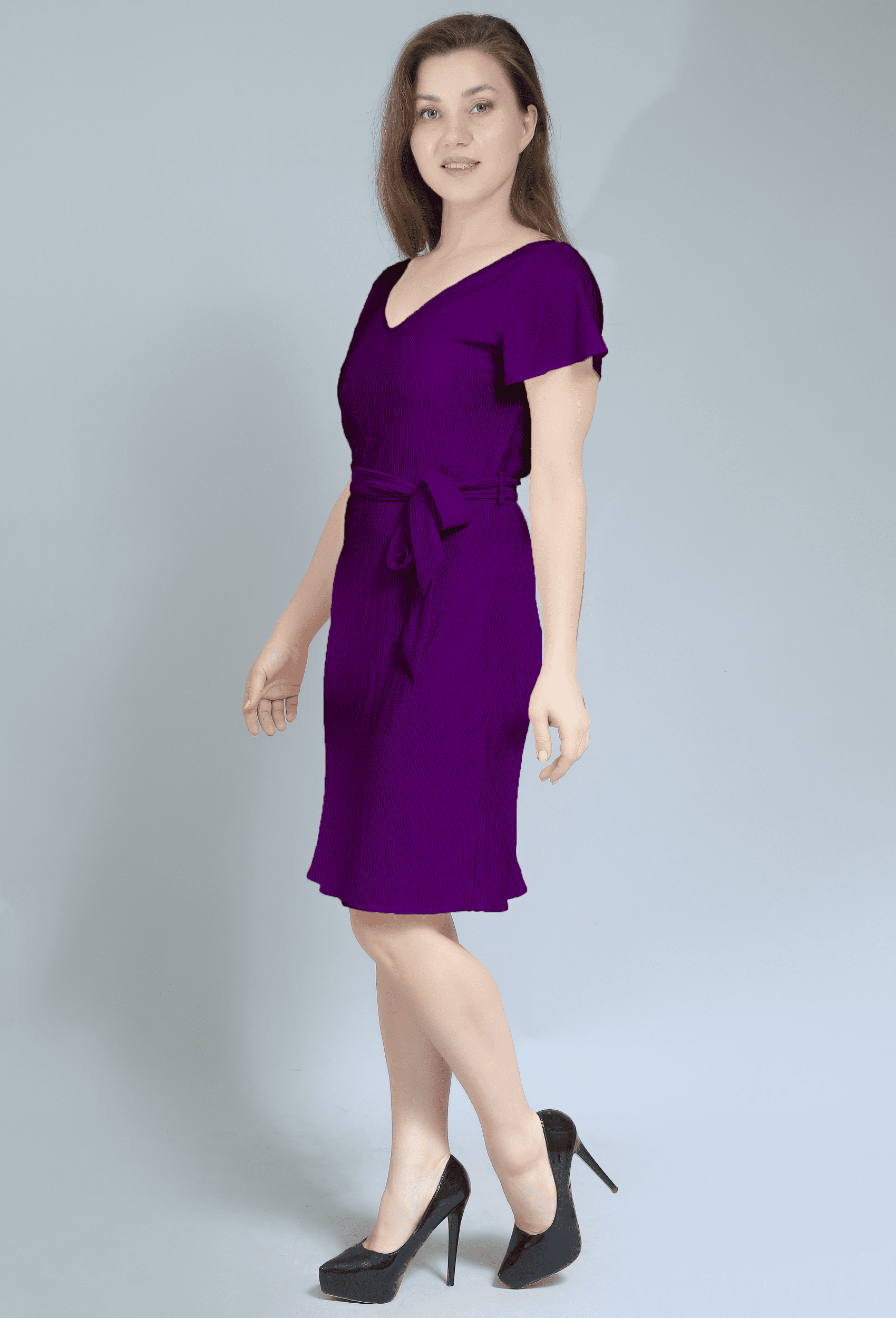 Available in a range of sizes, the Purple V-Neck Belted Dress is a wardrobe staple that celebrates individuality and style. Easy to care for and perfect for layering, it’s ideal for all seasons. Whether you’re dressing up or keeping it casual, this dress promises to turn heads and keep you feeling confident. Add the Purple V-Neck Belted Dress to your collection and embrace the blend of comfort and style for any occasion!