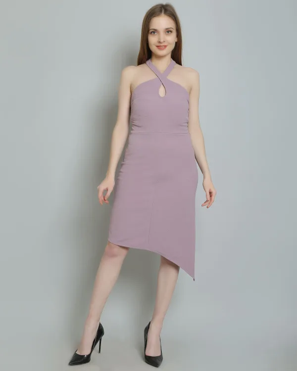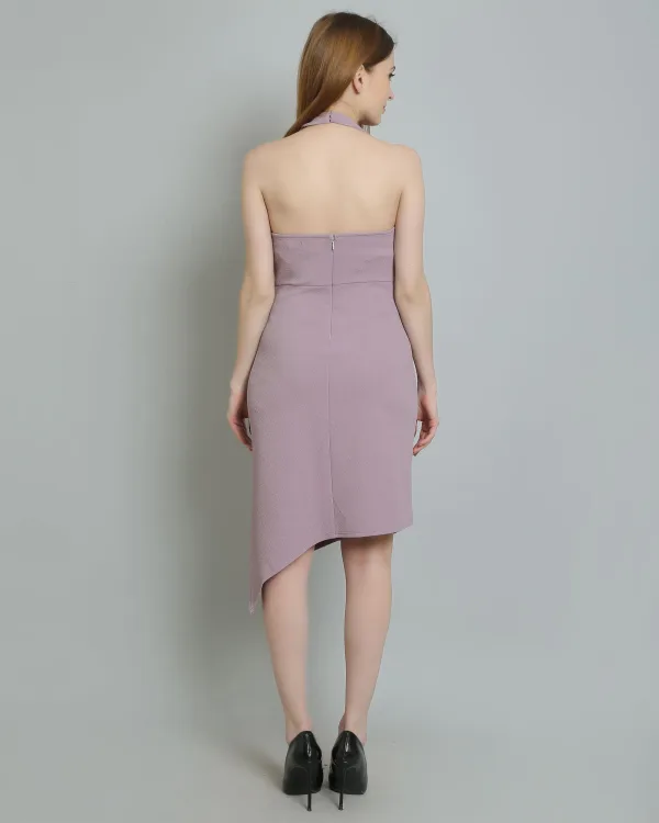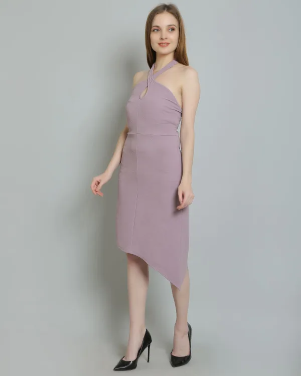 Pair it with strappy heels and delicate jewelry for an effortlessly sophisticated look, or dress it down with sandals for a more relaxed vibe. The Lavender Asymmetric Halterneck Dress is versatile enough to transition from day to night, making it a must-have addition to your wardrobe. Embrace your unique style and turn heads wherever you go with this stunning dress!