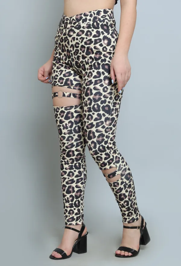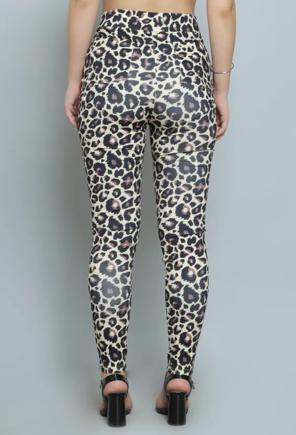 Step out in style with our Leopard Print Jeggings, the perfect blend of comfort and trend. Designed to fit like a second skin, these jeggings offer the look of classic denim while providing the flexibility and softness of leggings. The eye-catching leopard print adds a bold and adventurous flair to your wardrobe, making them a standout piece for any outfit.Crafted from high-quality, stretchy fabric, these jeggings hug your curves in all the right places, ensuring a flattering fit that enhances your silhouette. The elastic waistband provides added comfort, allowing for easy wear throughout the day. Whether you’re dressing them up for a night out with a chic top and heels or keeping it casual with a cozy sweater and sneakers, these jeggings offer endless styling possibilities.Perfect for any season, they can transition effortlessly from day to night. Pair them with a solid color for a balanced look, or mix and match with other patterns for a fashion-forward statement. Embrace your wild side with our Leopard Print Jeggings and make a bold impression wherever you go!