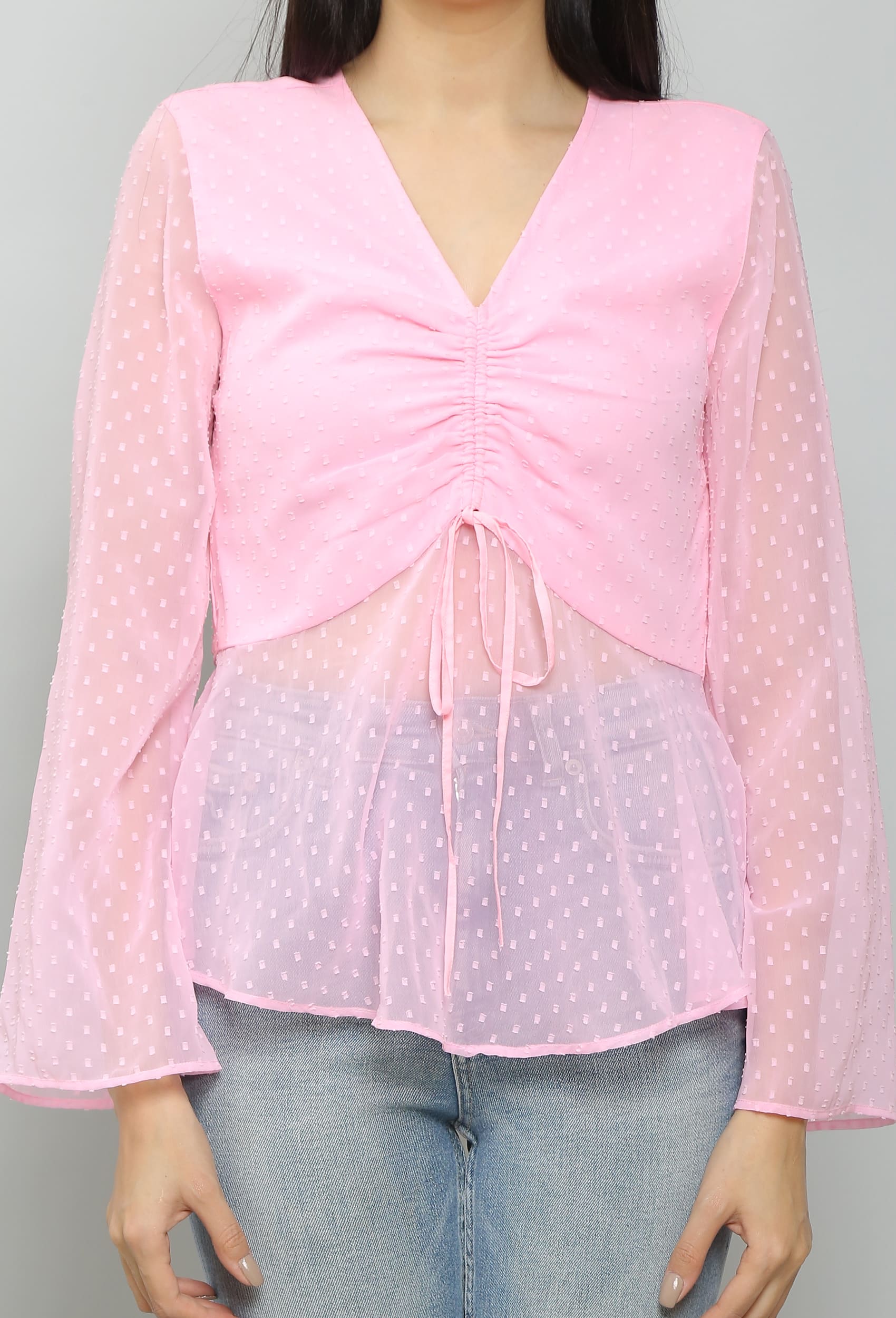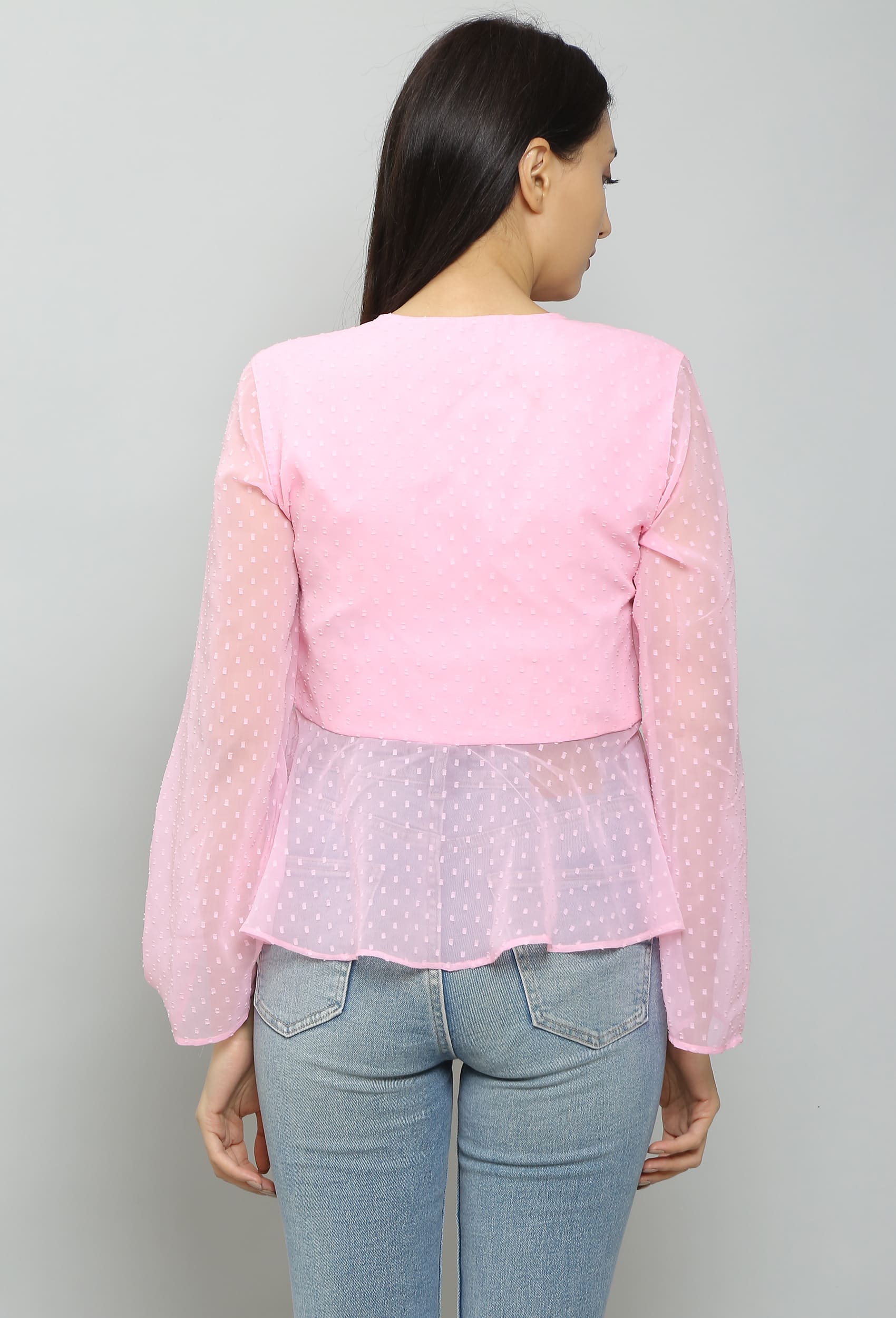 Im really pleased with this light pink peplum top. The self-design adds a unique touch, and the fit is flattering.