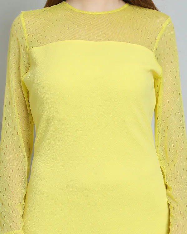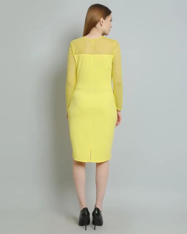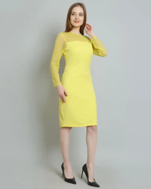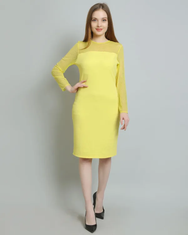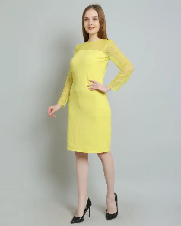 Introducing the Lime Yellow Mesh Bodycon Dress, the ultimate statement piece for your wardrobe. Perfectly blending vibrant color with contemporary design, this dress is tailored for those who want to stand out and make an impression. Crafted from a high-quality mesh fabric, it offers both comfort and stretch, ensuring a flattering fit that hugs your curves in all the right places.