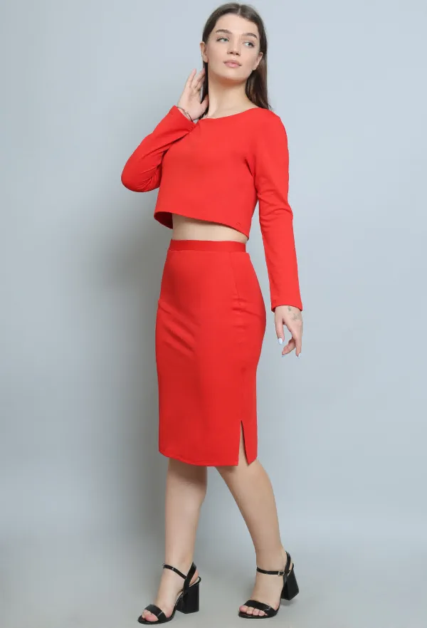 Elevate your wardrobe with our stunning Red Top & Skirt Co-ord Set, a perfect blend of bold style and effortless elegance. This vibrant ensemble features a chic crop top with a flattering fit, designed to highlight your silhouette and provide ultimate comfort. The matching skirt completes the look, falling gracefully to a flattering length and adding a touch of sophistication.Crafted from high-quality, breathable fabric, this co-ord set is ideal for various occasions—whether you're heading to a brunch date, an evening out, or a casual gathering with friends. The striking red hue not only makes a statement but also adds a pop of color to your outfit, ensuring you stand out in any crowd.Versatile and easy to style, you can pair this set with heels for a polished look or opt for sneakers for a more laid-back vibe. Accessorize with your favorite jewelry and a chic handbag to complete your ensemble. The Red Top & Skirt Co-ord Set is not just a fashion choice; it’s a reflection of your bold personality. Make a statement and embrace your style with this must-have outfit!