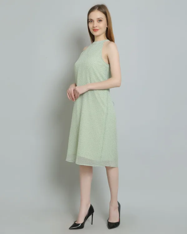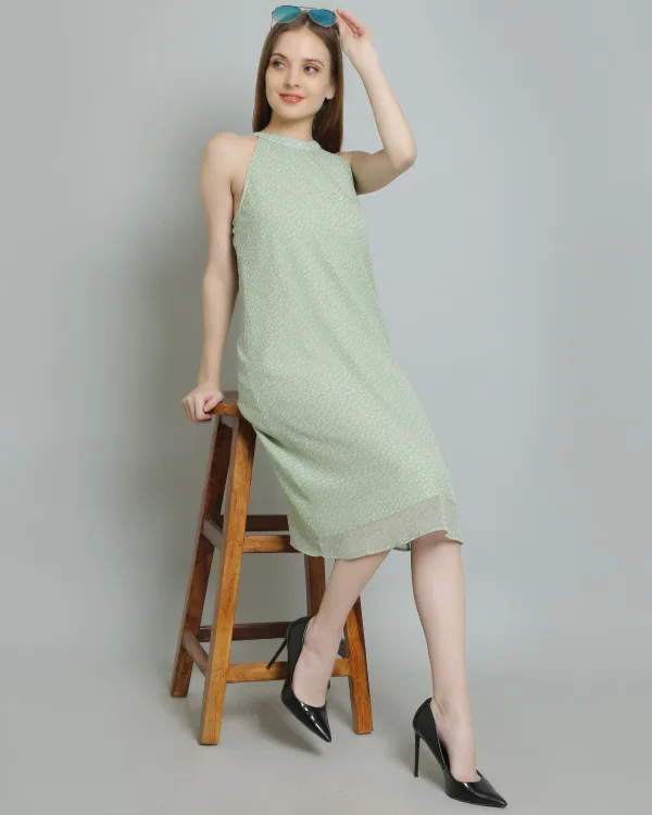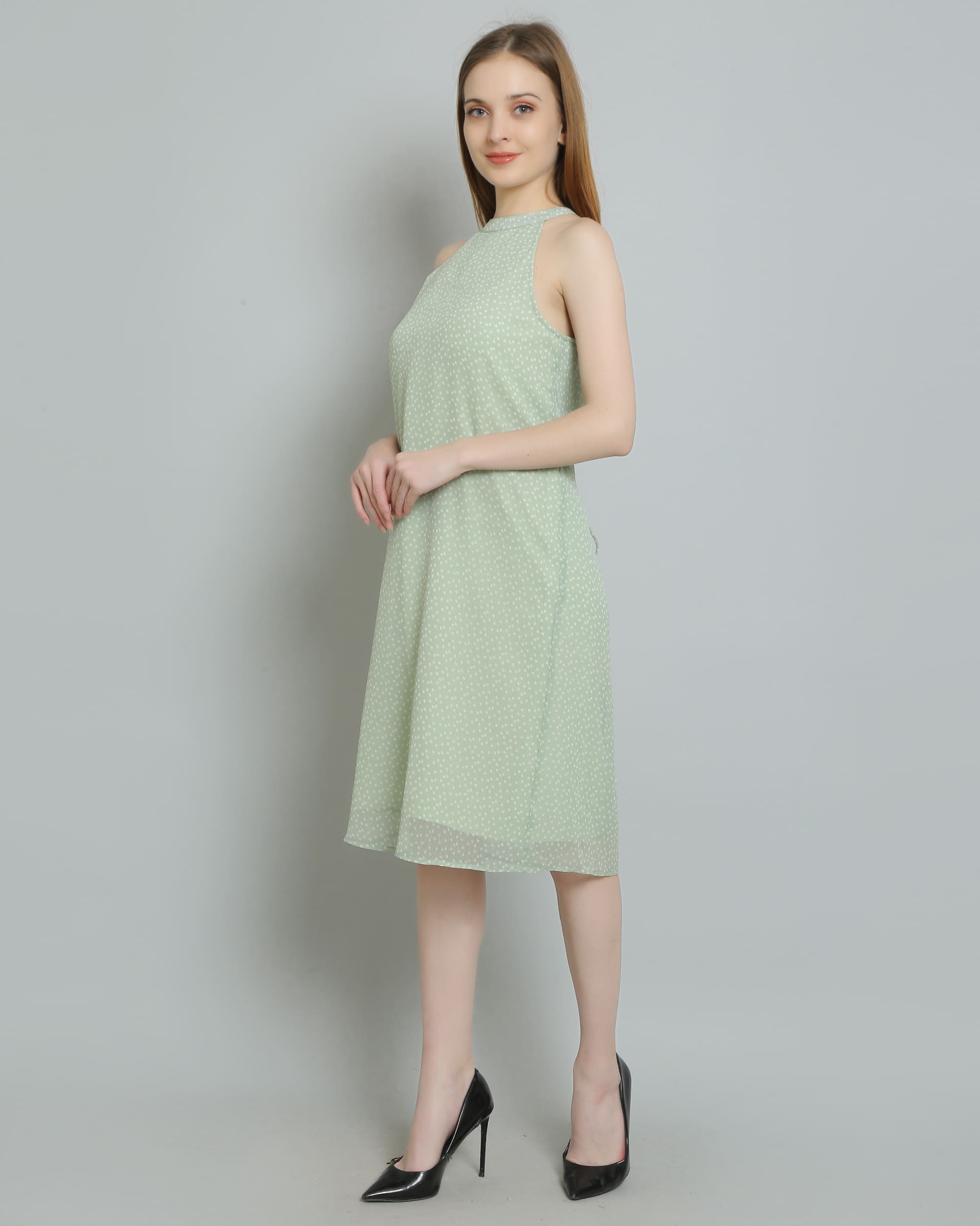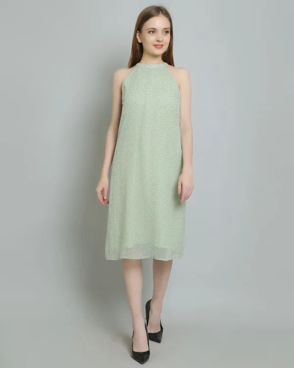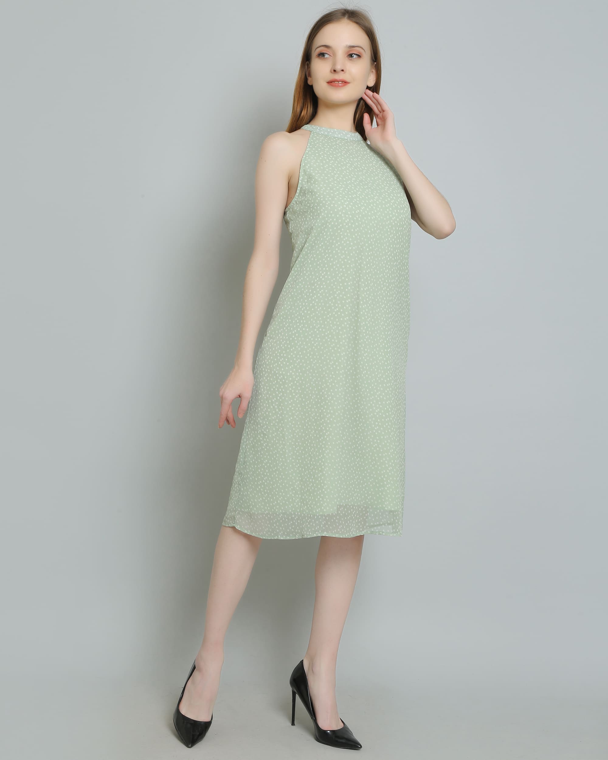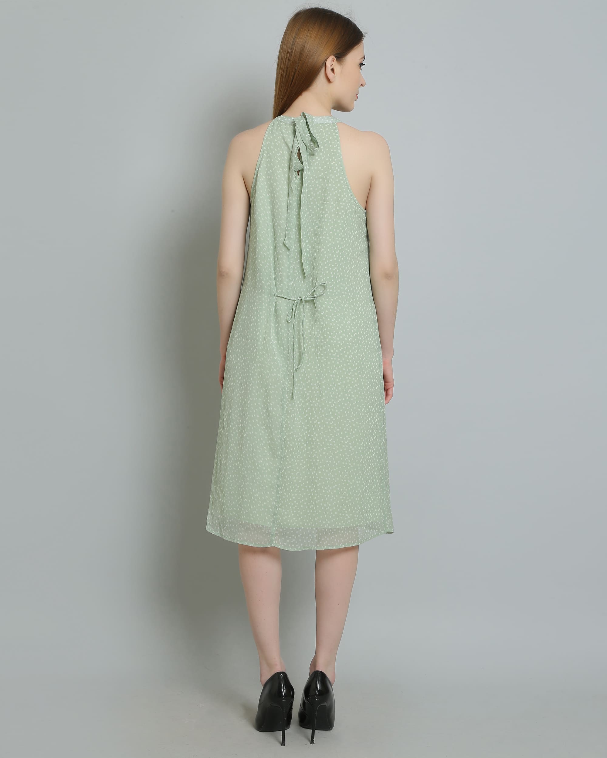 Ideal for various occasions, this dress will quickly become a staple in your summer wardrobe. Whether you're attending a picnic in the park, heading to a beachside party, or enjoying a romantic dinner under the stars, the Sea Green Polkadot Halterneck Dress is designed to make you feel confident and stylish.