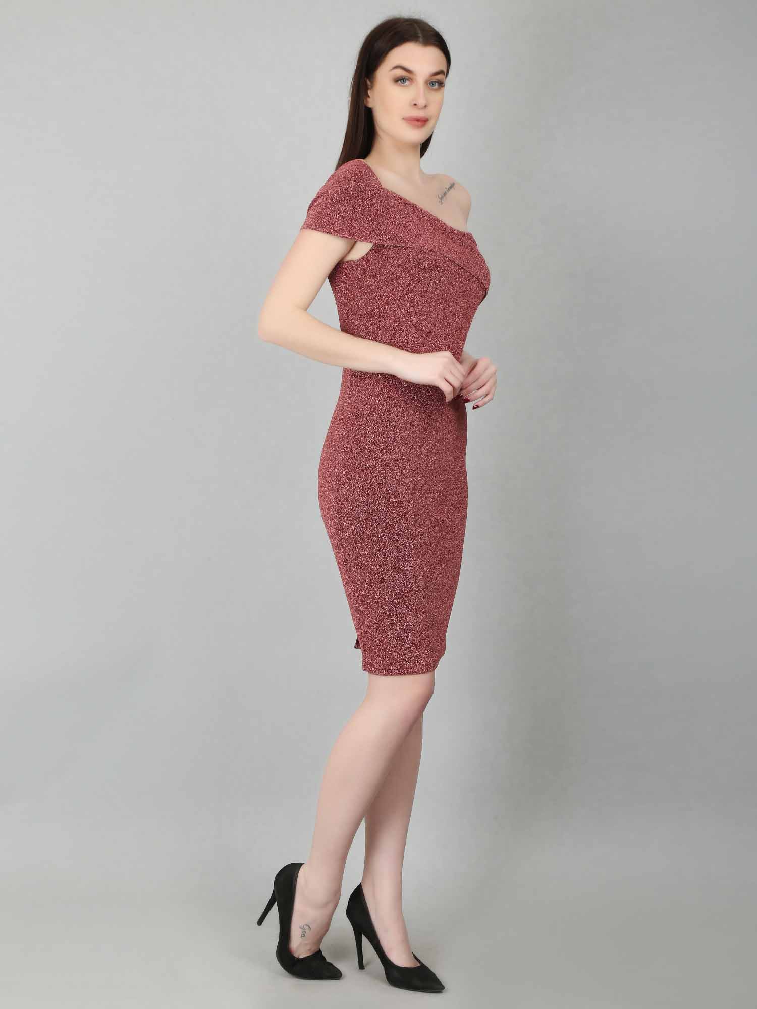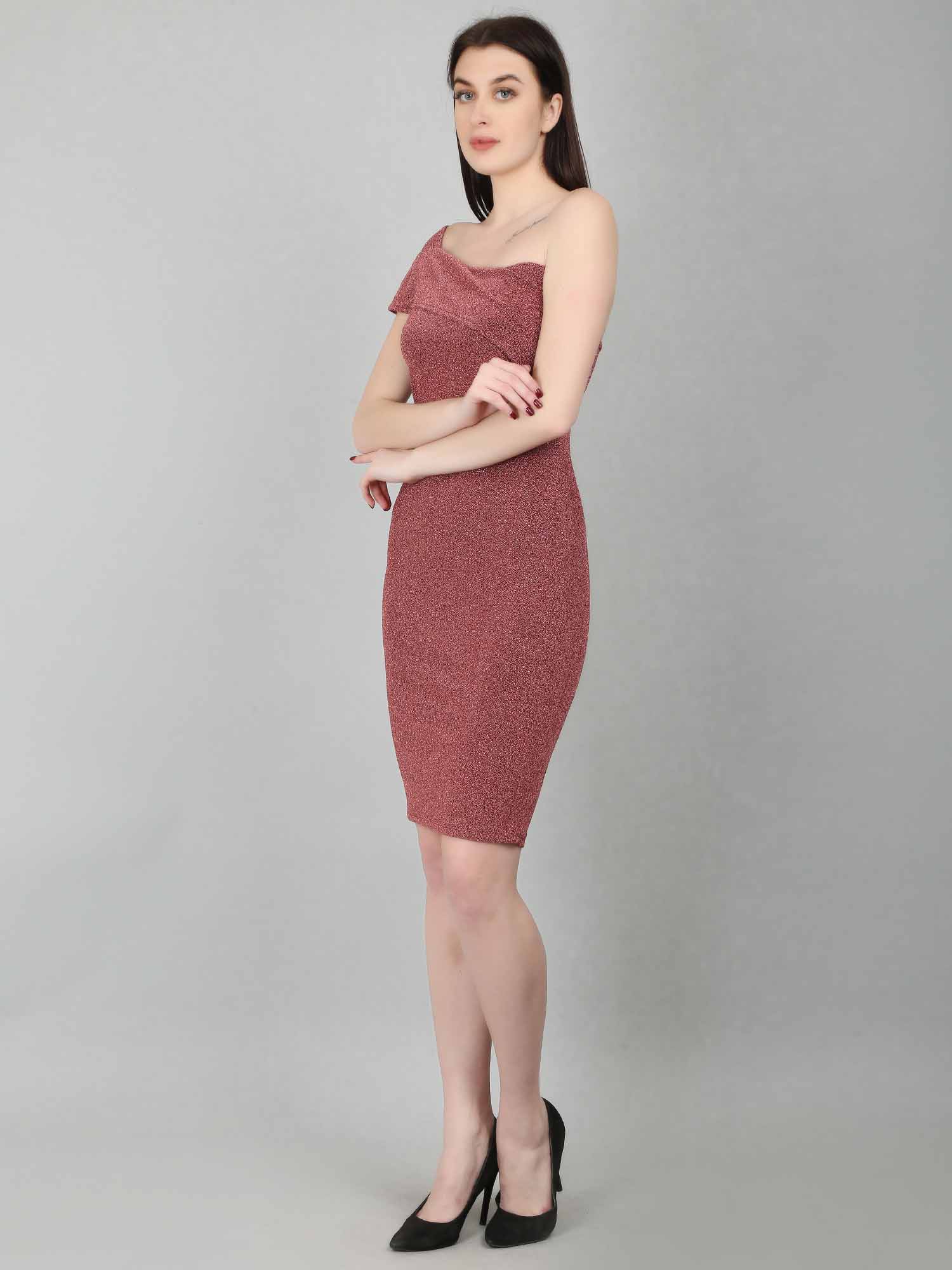 Perfect for formal occasions such as weddings, proms, or special events, this party dress combines high-quality, durable materials with intricate design details. The one-shoulder style and below-knee length create an elegant look, while the stretchable fabric ensures comfort. A concealed zipper at the center back and a slit at the bottom add practical and stylish touches. The Jazzlr shimmer bodycon party dress is a must-have for any fashion-conscious woman looking to stand out and look her best.
