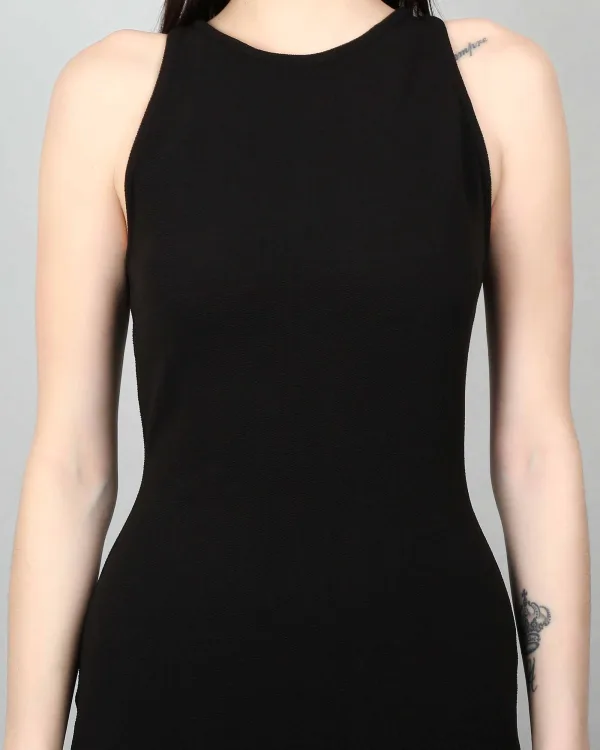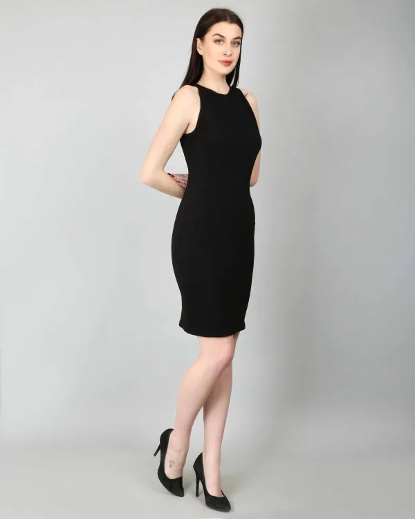 A black bodycon dress is a versatile wardrobe essential that flatters your silhouette and can be styled for any occasion. Dress down your black bodycon dress with sneakers and a denim jacket for a casual vibe, or elevate it with heels and statement jewelry for formal events. Its adaptability makes a black dress perfect for year-round wear, whether layered with tights and boots in colder months or paired with sandals in summer. When choosing a bodycon dress, look for a well-fitting style in stretchy fabric for comfort, and consider details like length, neckline, and sleeves. With features like deep armholes, a concealed back zipper, and a center-back slit, this black bodycon dress is a timeless and stylish investment.