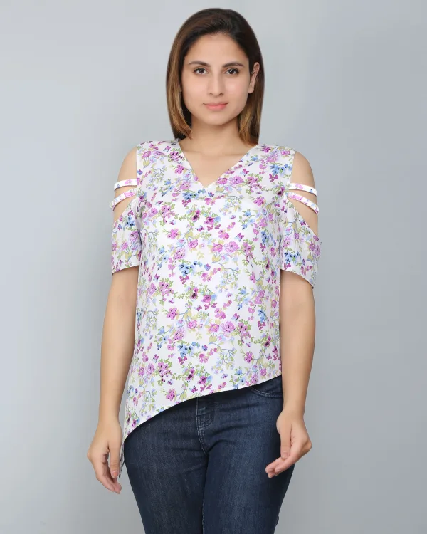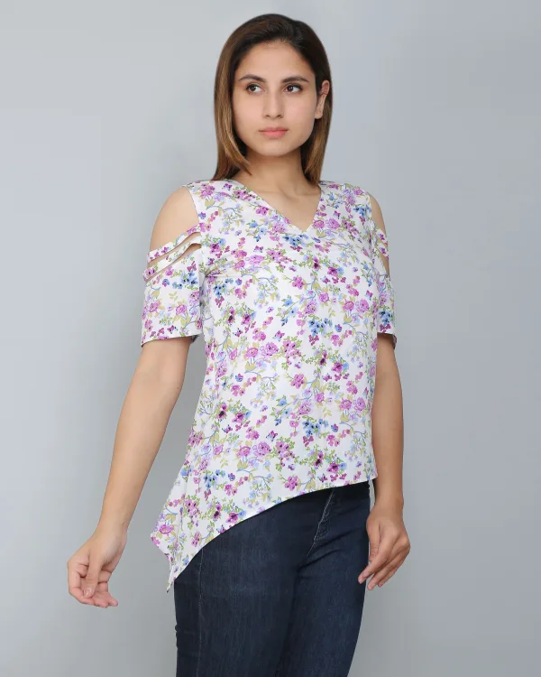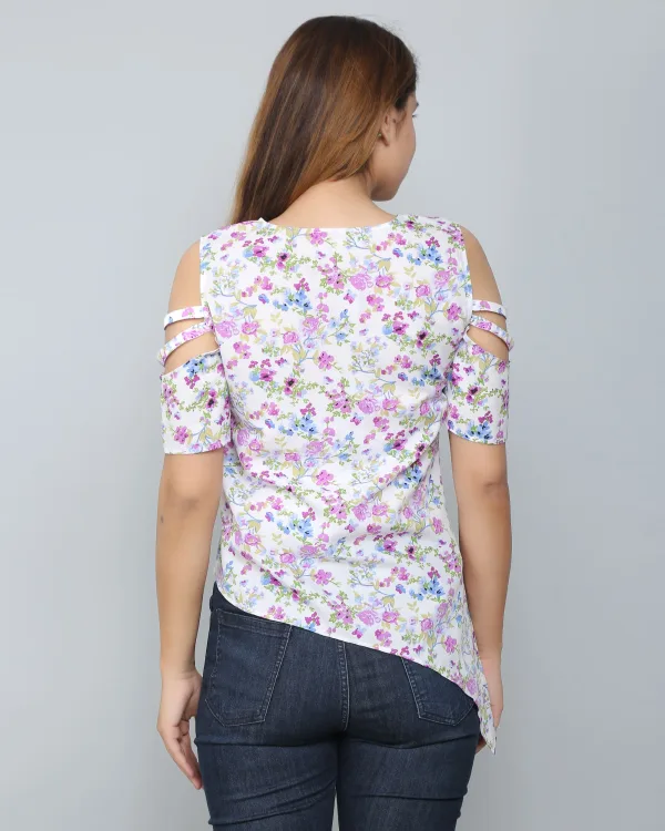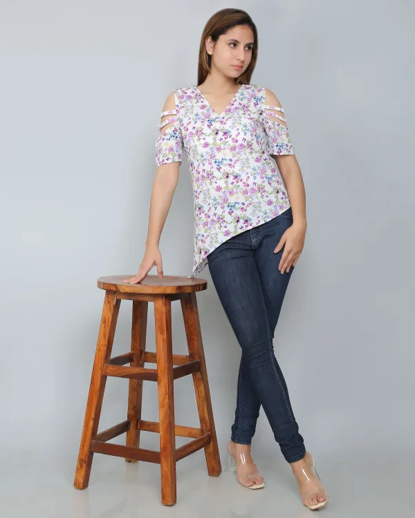 The White Floral Asymmetric Top is a chic and modern piece, perfect for adding a stylish twist to your wardrobe. Crafted from lightweight, breathable fabric, this top features a crisp white base adorned with a delicate floral print, offering a fresh and feminine vibe. The standout detail is its asymmetric hemline, which adds a unique and contemporary touch to the design. With a relaxed, flattering fit, it’s ideal for both casual and semi-formal occasions. Pair it with jeans, trousers, or skirts for an effortlessly elegant look, making this top a versatile choice for any day or evening event.