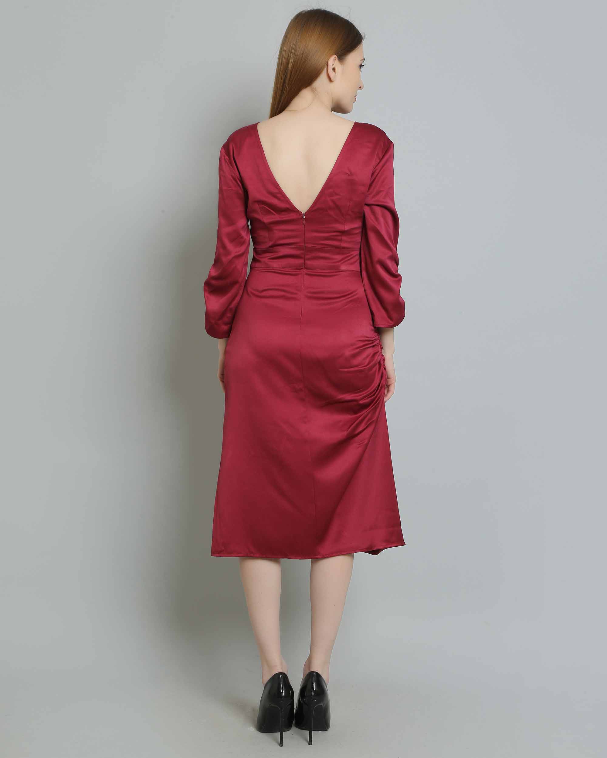 Versatile and timeless, the Wine Satin Dress can be styled to suit any occasion. Pair it with strappy heels and statement earrings for an elevated look at a formal event, or dress it down with a denim jacket and ankle boots for a chic daytime ensemble. The richness of the satin fabric ensures that you'll shine, whether you're attending a wedding, a dinner date, or a festive gathering with friends.